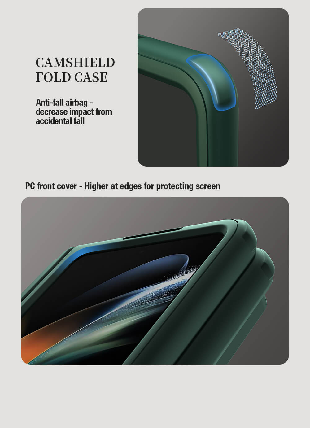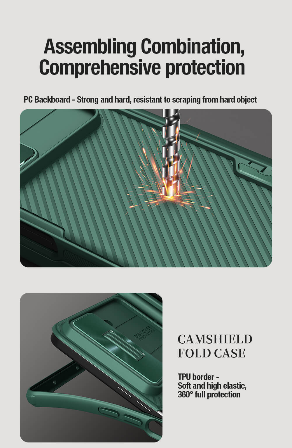 CamShield Fold Case is a functional upgrade under the best-selling classic one, bringing a more convenient experience to you. Adopt assembly and combination design with 180 ? folding freely; By combining soft TPU and hard PC, your phone can obtain 360 ? full protection; Lens sliding cover is made of dazzling metal, which combines exquisiteness and protection; A detachable stand design,free your hands from phone; Spray rubber oil on the surface processed a three-dimensional classic texture, providing a refreshing and comfortable touch.